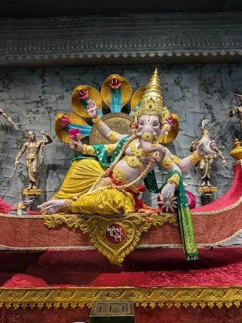 Fruits symbolize the bounty of nature and are presented as a gesture of gratitude․ Rice (akshata)‚ often colored with turmeric‚ is used for sprinkling during mantras‚ signifying abundance and purity․ Water in a kalash (holy pot) is essential‚ representing the source of life and the presence of the divine․ Finally‚ sacred threads (kalava) are used for tying around wrists or idols‚ symbolizing protection and connection to the divine․